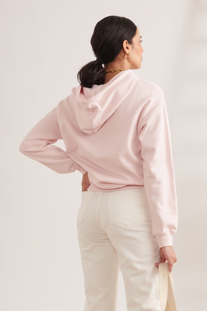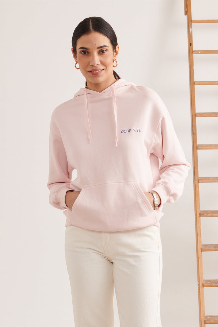 Sweat en coton molletonné avec col à capuche réglable et manches longues.